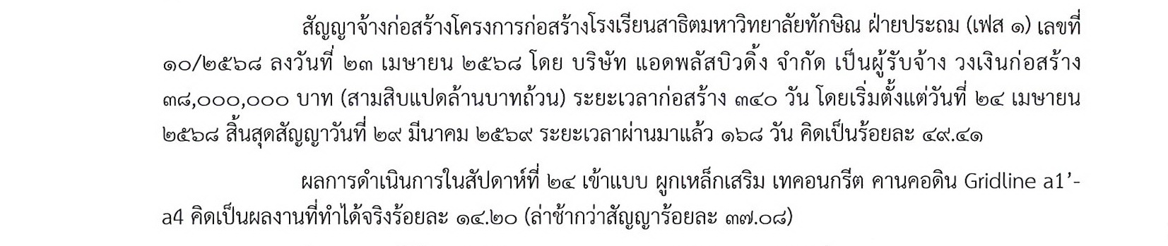 ความคืบหน้า เมื่อวันที่ 2 ต.ค. 68 - 8 ต.ค. 68