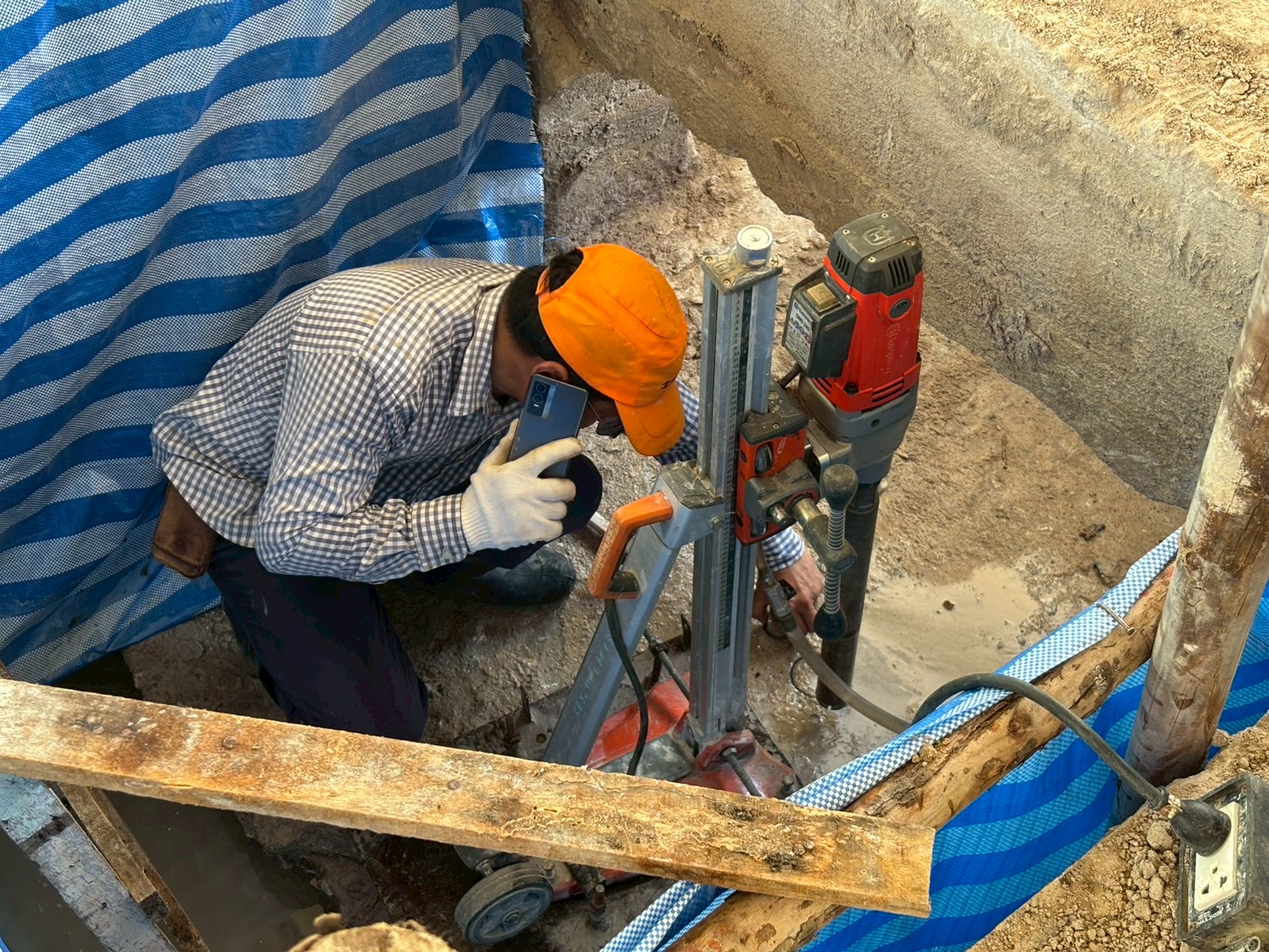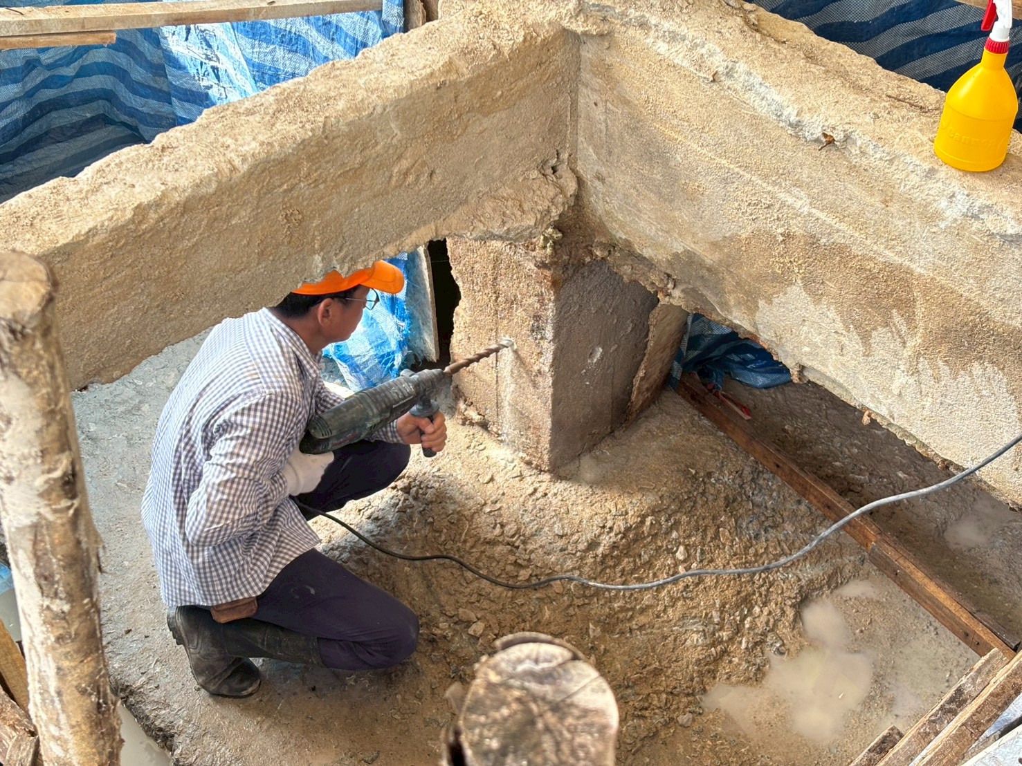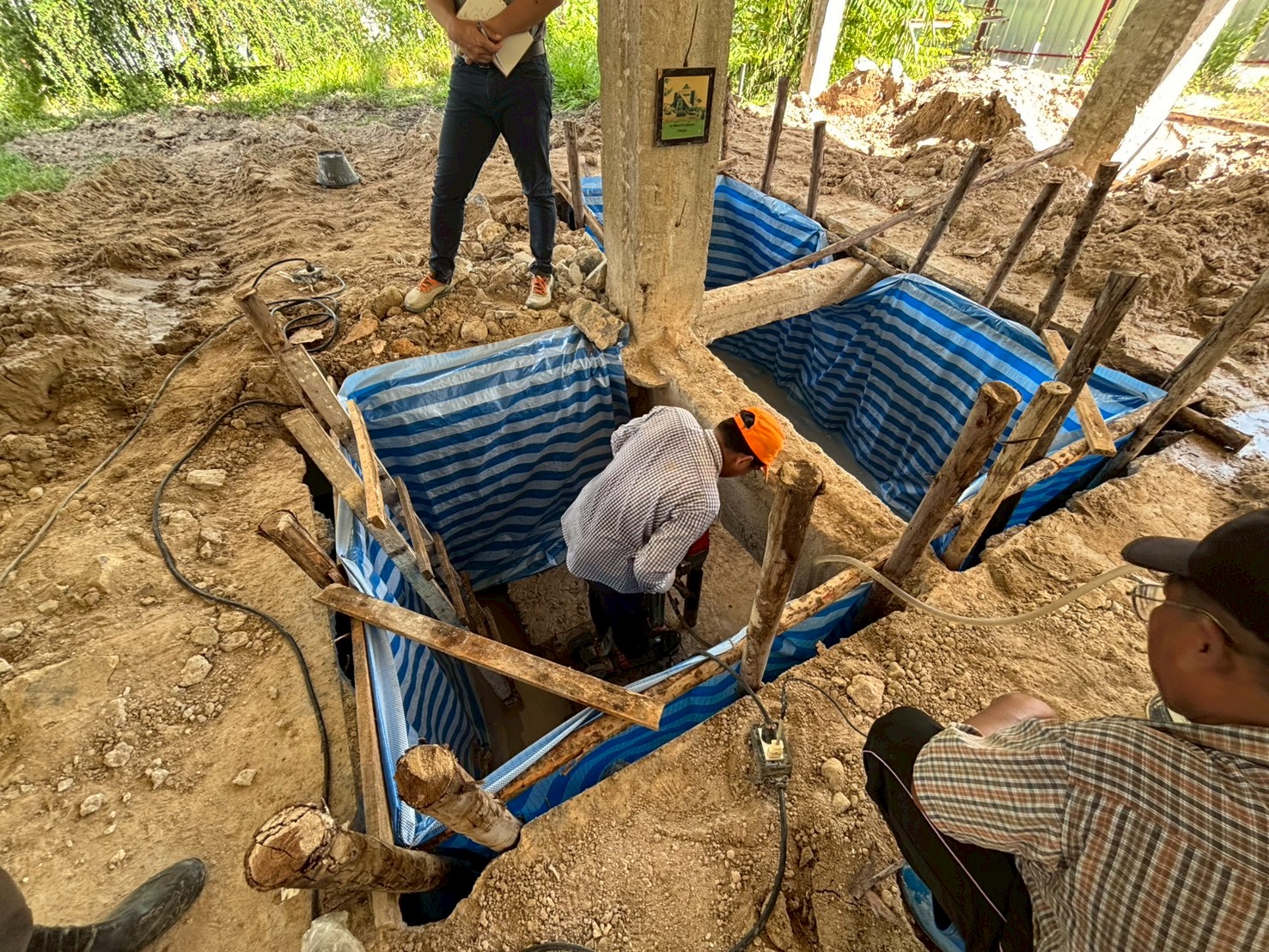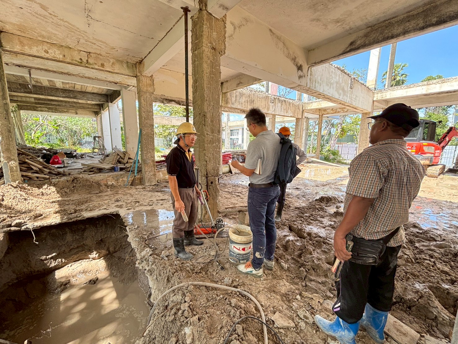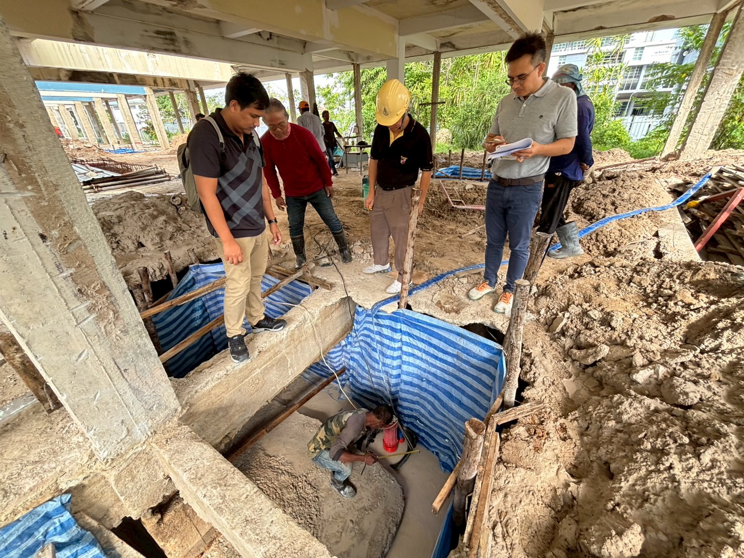 เจาะสำรวจเก็บตัวอย่างฐานรากและตอม่ออาคารกิจกรรมนิสิต(เก่า)