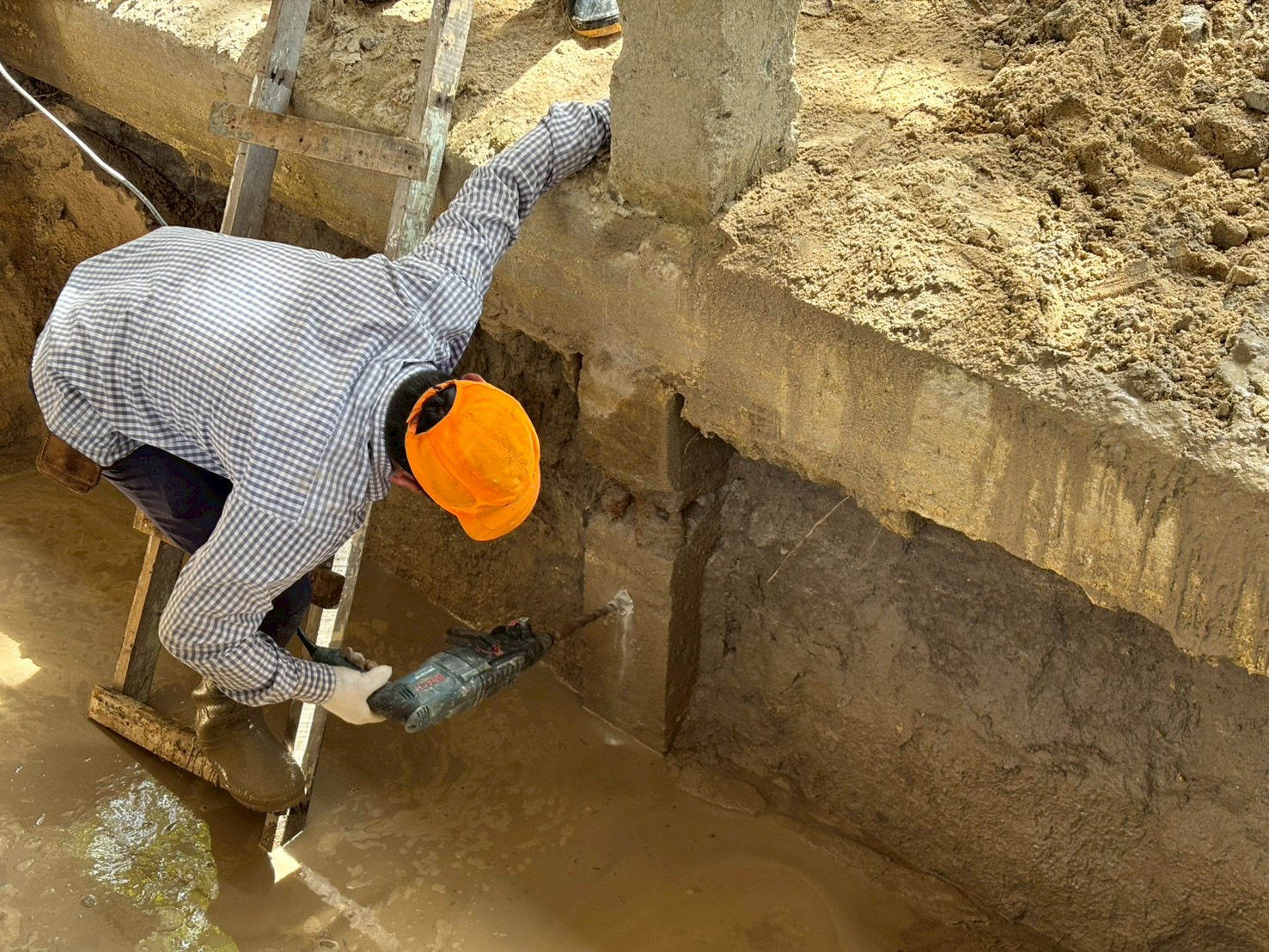 การสำรวจสภาพทั่วไปฐานรากและตอม่ออาคารกิจกรรมนิสิต(เก่า)